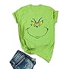 Women Grinch Stole Christmas Grinch Face Green Shirt Casual Short Sleeve Graphic T-Shirt Tee Tops