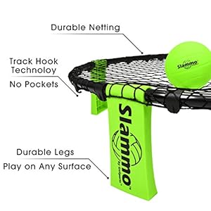 WHAT IS SLAMMO: Slammo is an action packed 2 on 2 volleyball style outdoor game; Teams have 3 hits to bounce or spike the ball to the net fun for family and friends out on the yard, at the beach, cookouts, camping, and more