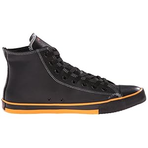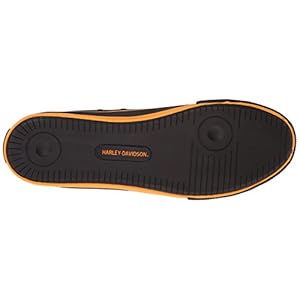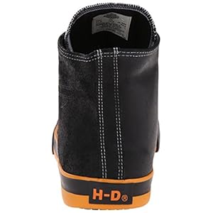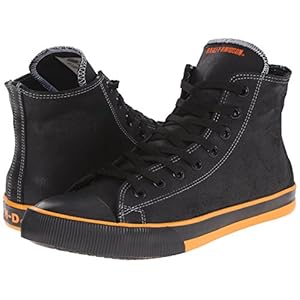 Lace-up sneaker with cap toe featuring Harley Davidson branding at tongue and shaft