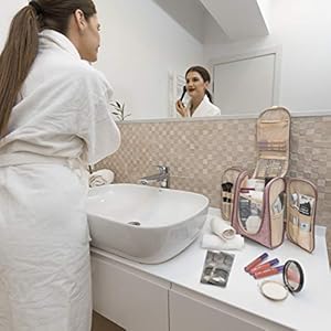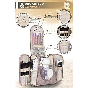 Make each Day your Masterpiece! You want to keep all your travel products Well organized or have a Sturdy bag that holds all your toiletries uptight, so Nothing spills out … We want to provide the Best vehicle towards Your goals. Our Hanging Toiletry & Makeup Bag has a Unique design with 18 vertical Leakproof pockets, 2 Large zipped pockets, and a Tall mesh section. Our design Maximizes the storage space while the Metal Hook makes it easy to hang anywhere. – No Mess & No Stress!