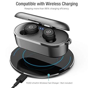 [Charge on-the-go]-TOZO T10 wireless earbuds can last for over 4 hours’ playtime from a single charge and 14 extra hours in the compact charging case. Charging case support wireless charging. Providing convenient charging way with no strings attached.