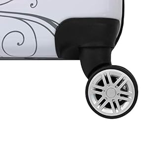 A unique butterfly emblazoned design and a dynamic exterior boasts a tough hard side construction that handles travel with grace and ease, while opening to reveal a fully stocked and versatile interior with garment restraints, accessory pockets, zipper pockets and more. Sitting confidently on 8 spinner wheels, this lightweight bag rolls in any and every direction